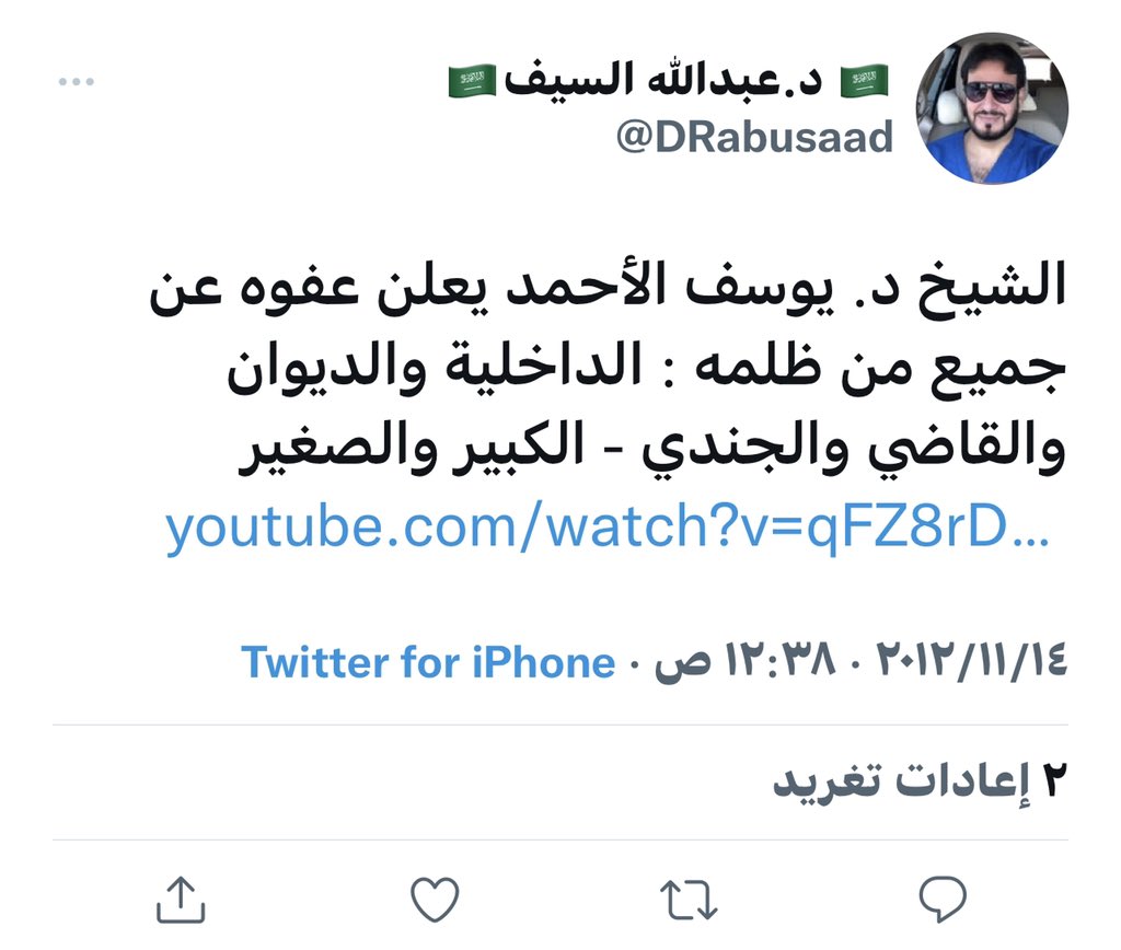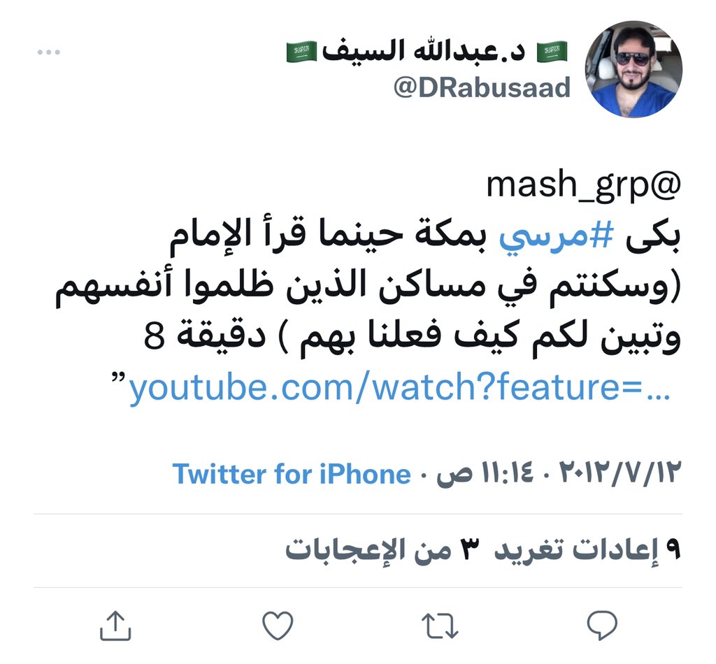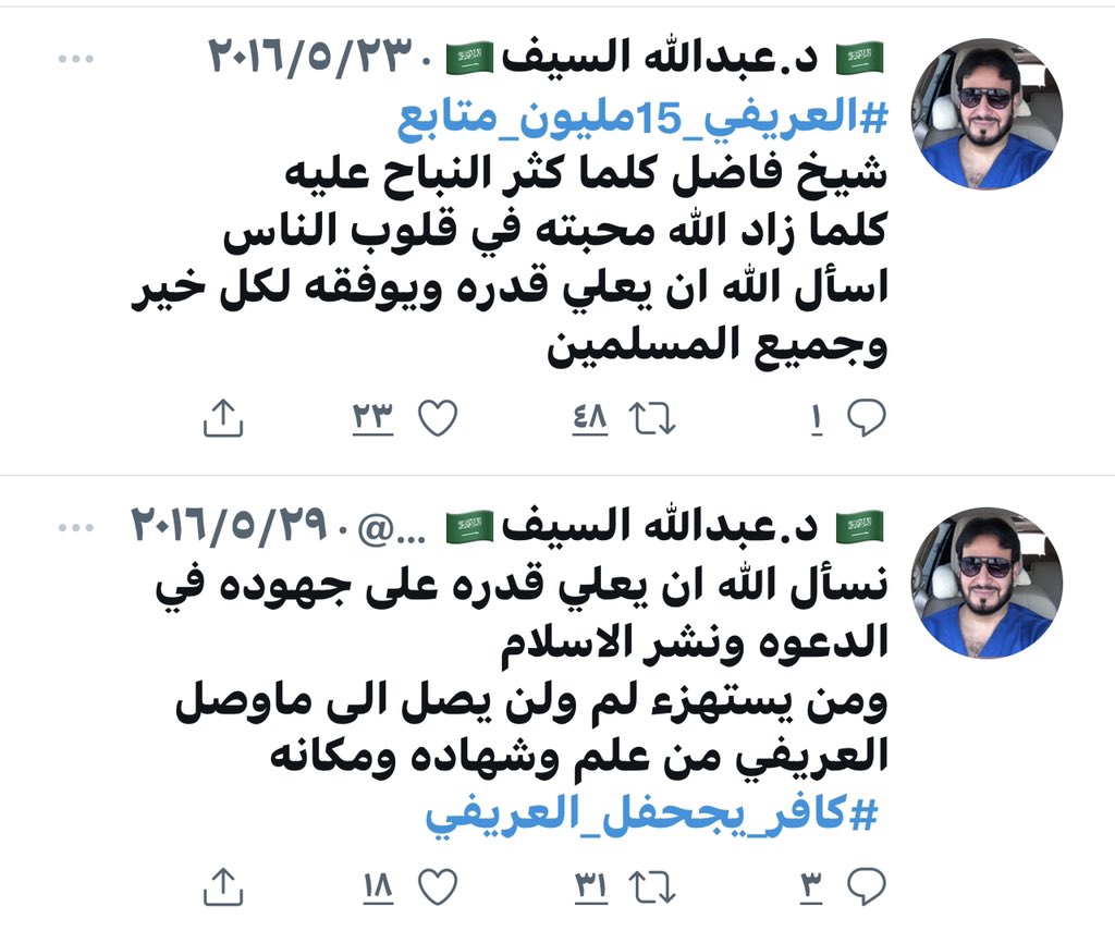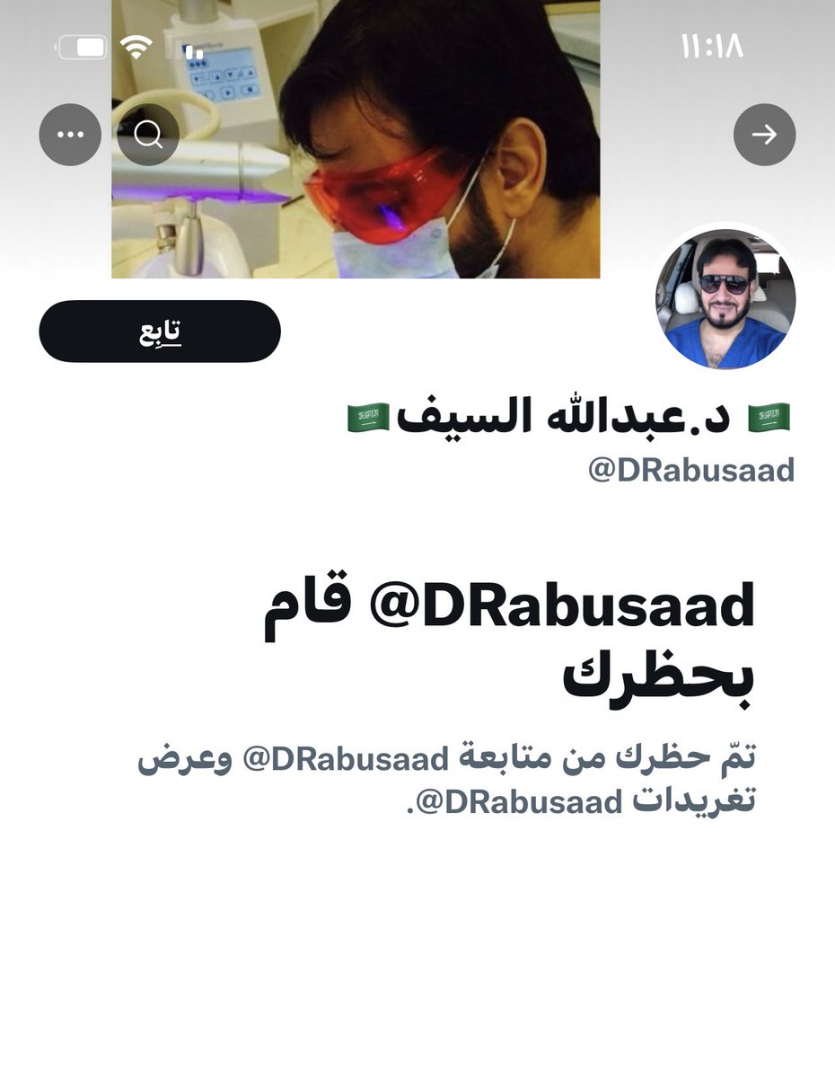 طبيب الاسنان عبدالله السيف @DRabusaad وجدته حاظر حسابي واستغربت لاني لا اعرفه فبحثت في حسابه قبل وبعد العام ٢٠١٦ ، لانها كانت سنه ظهور #الوطنيون_الجدد ، فوجدت العجب العجاب في تغريداته قبل العام ٢٠١٦ فعرفت لماذا قام بحظر حسابي فحبه لمرسي والعريفي والطريفي والبريك هو مادفعه لذلك..!