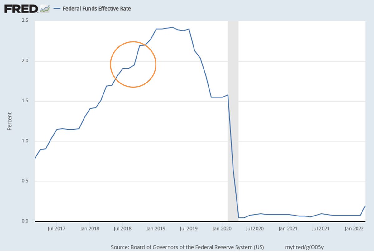 2. أدى النمو الاقتصادي والتضخم المرتفع إلى قرار الاحتياطي الفدرالي برفع معدل الفائدة والتوقف عن التيسير الكمي (وهو عبارة عن شراء سندات الخزينة والقروض السكنية – وتوقفه يعني انخفاض الطلب على السندات والقروض وارتفاع العائد عليهما).