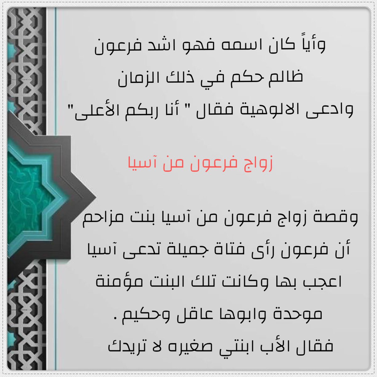 ومن قصص جبروت فرعون قصة زواج آسيا من فرعون مُكرهة #ثقافة 1️⃣1️⃣ فهي بالأصل فتاة مؤمنه ابنة رجل صالح