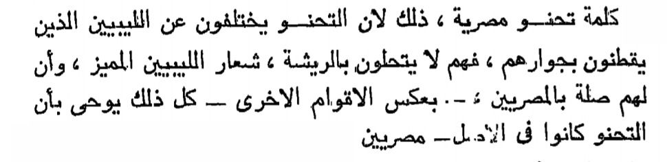 التحنو (ويوجد معهم التمحو) هم نفسهم الموصوفين أركيولوجياً بعدم اختلافهم عن المصريين، رغم أن علماء المصريات الأوائل نسبوهم لما يعرف بالليبيين (واسم الليبو لم يظهر في المصادر المصرية سوا بعد 1000 سنة من ظهور التحنو).