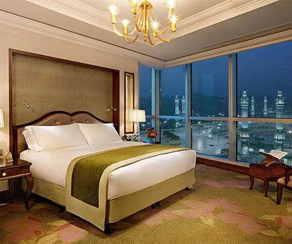ويحتوي "قصر مكة رافلز" على أجنحة كاملة بإطلالة ساحرة على #المسجد_الحرام و #الكعبة، ويقع الفندق بجوار المسجد الحرام مباشرة، ويوفر وصولاً سهلاً لبوابة الملك عبد العزيز والمدخل الرئيس للمسجد.