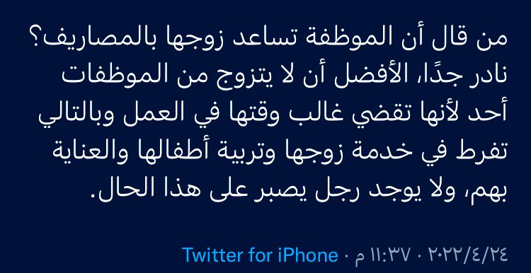 يبحث عن فتاة لديها طموحات أكاديمية ووظيفية ثم يجد بعد الزواج بأن وقتها وطاقتها ليسا له وللأسرة ١٠٠٪ ثم يحصل الصدام ثم خلع أو طلاق!