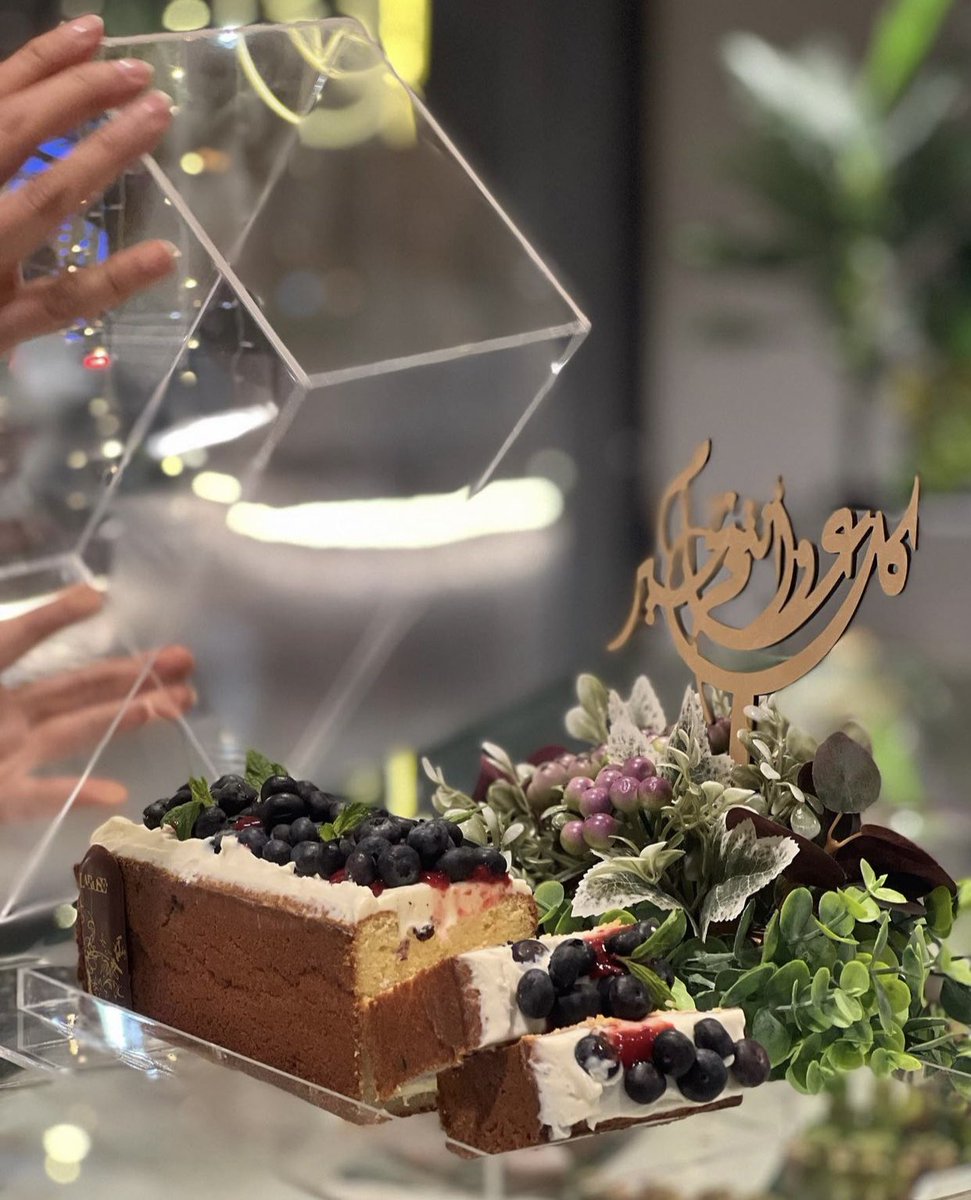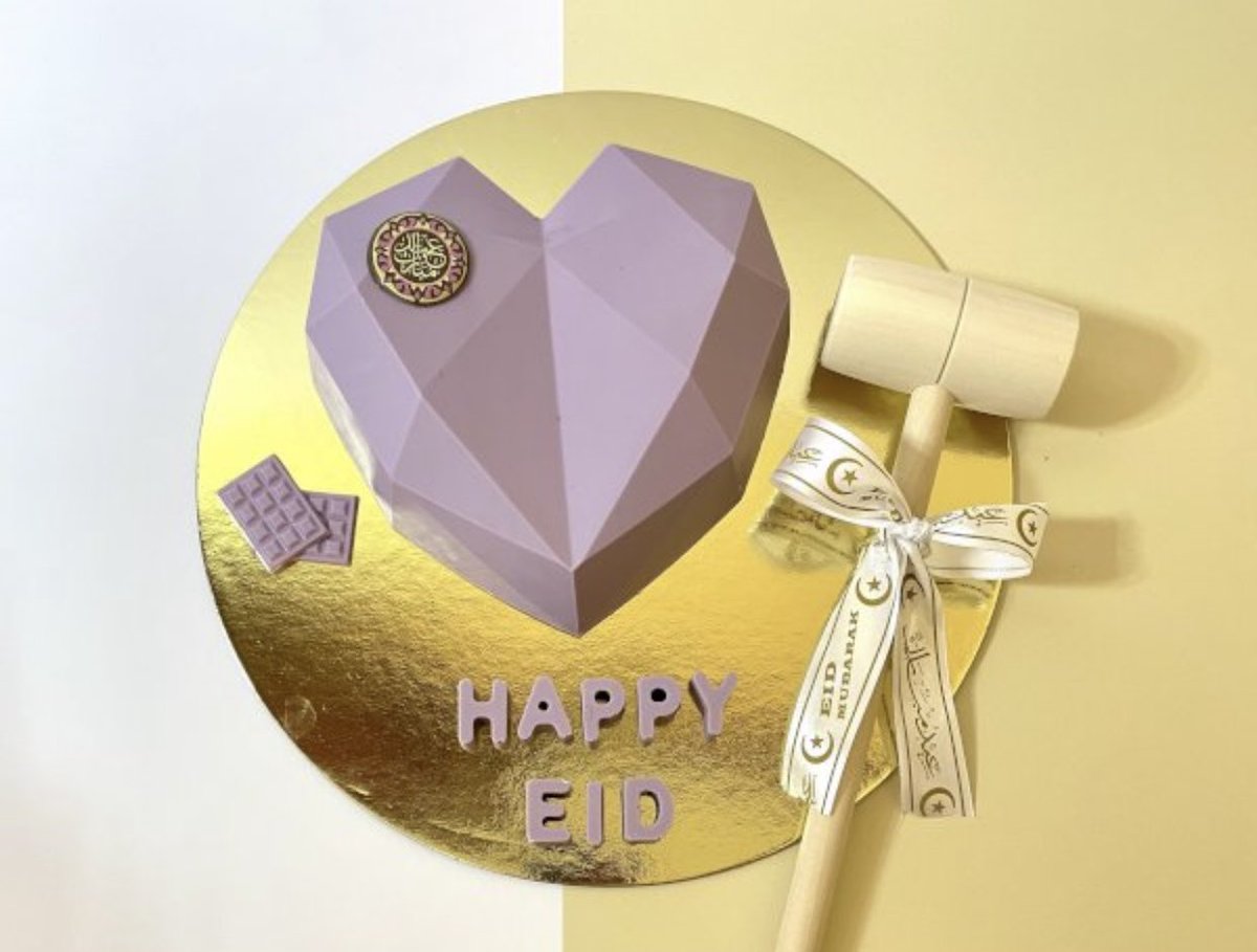 كيكة العيد على شكل قالب قلب مع مطرقة تكسير الشوكلت تحتوي على حلويات أطفال أو فراولة