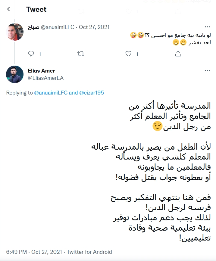 فيها حرية أكبر من المدرسة لكن الطرائق في
