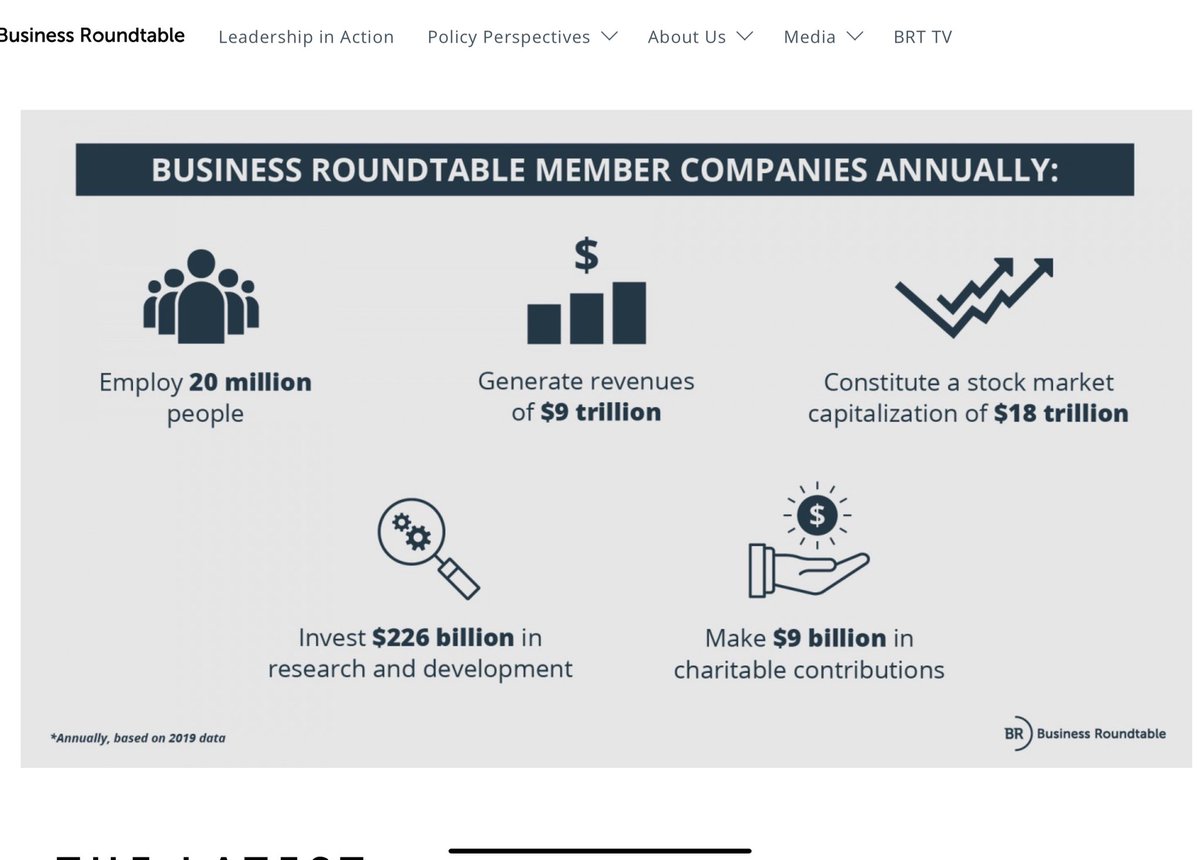 —رابط تقريرهم والذي صدر من أقوى CEOs ورؤيتهم في إعادة النظر في مفهوم الاقتصاد وغرض #الشركة الرئيسي حيث يجب أن تدار الشركة ليس فقط تحقيق أرباح لمصلحة #المساهمين فضلاً عن إعادة الاستثمار في العمال,والابحاث وغيرها من الأهداف الغير اقتصادية لخلق مجتمع أفضل