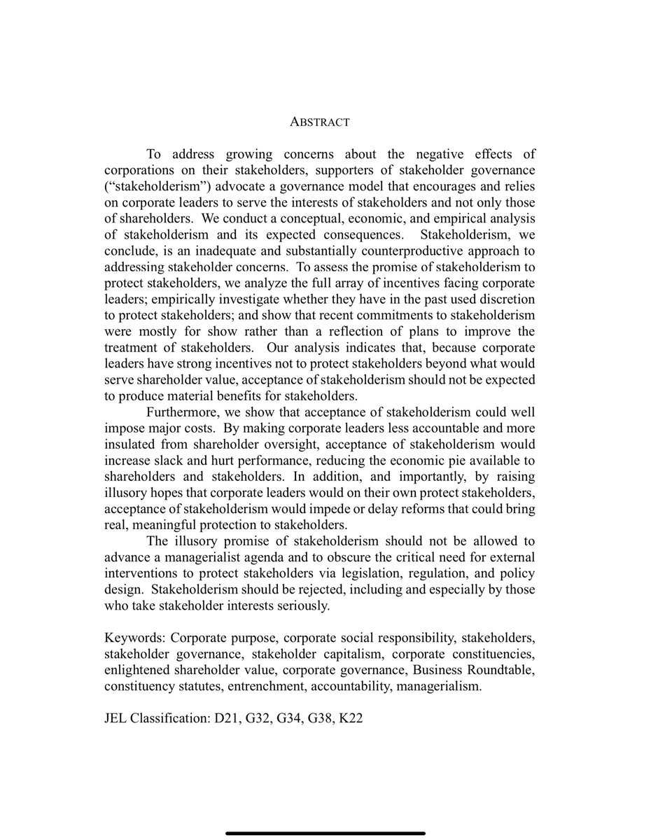 ٢. يرفض تماماً أن يكون للشركة غرض غير الربح وان يكون هدف الشركة غير الربح لا غير لهذا #حوكمة_الشركة يجب ان تكون لتحقيق الربح