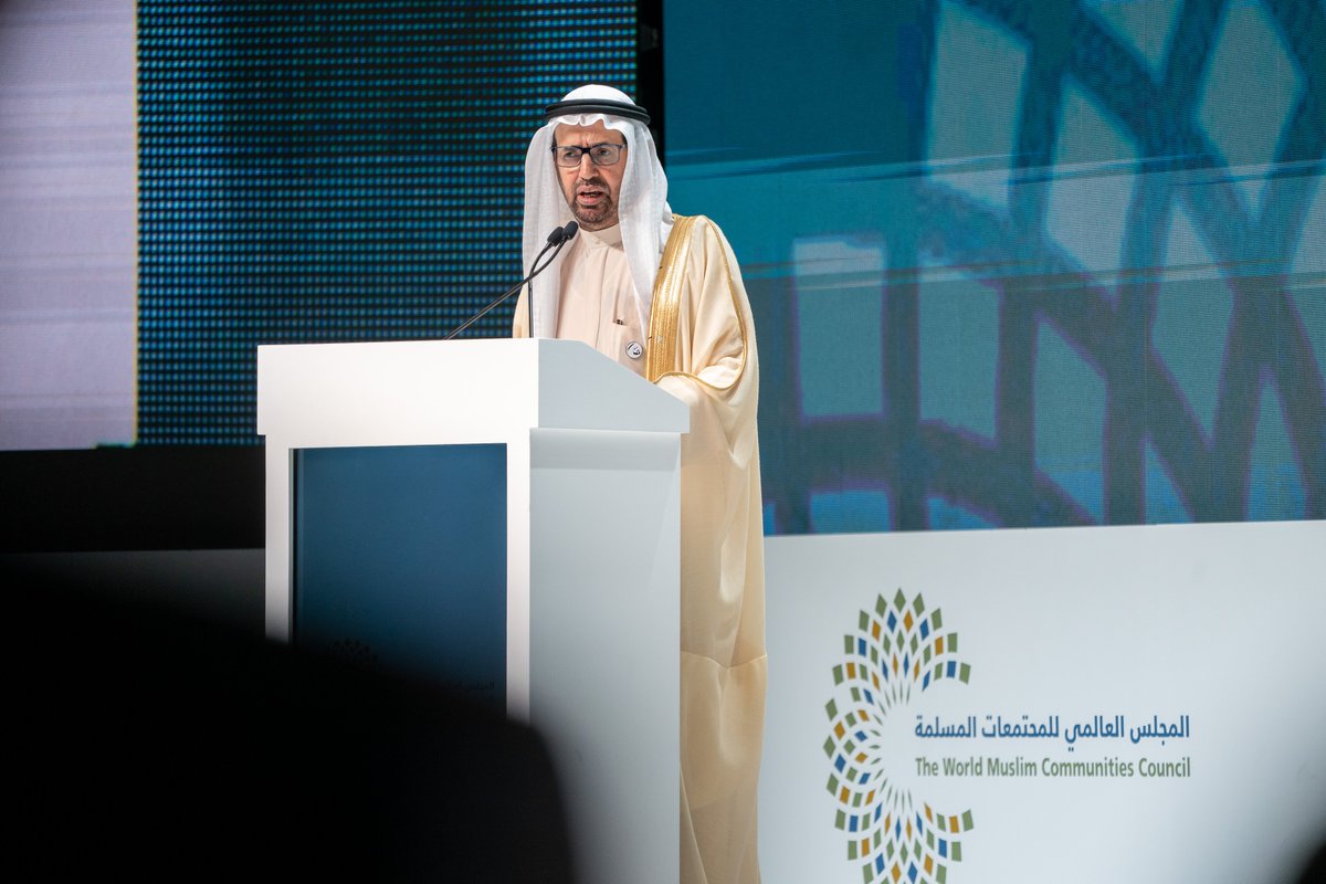 بينما قال معالي الدكتور #علي_النعيمي، رئيس #المجلس_العالمي_للمجتمعات_المسلمة، خلال كلمته إن الأمّة الإسلامية تعيش أزمة مرتبطة بقضية الهوية وإن ارتباطات الأمة الإسلامية تفرض علينا العمل المشترك وصناعة المستقبل