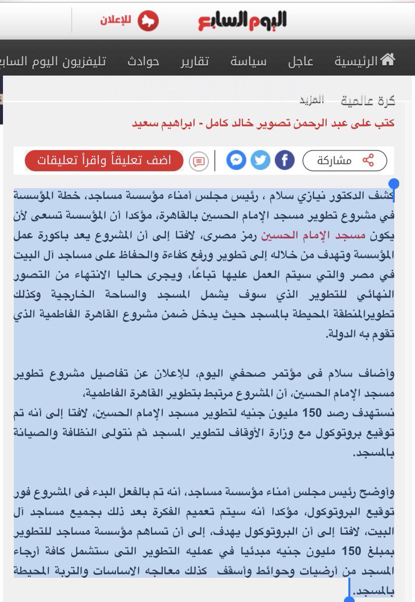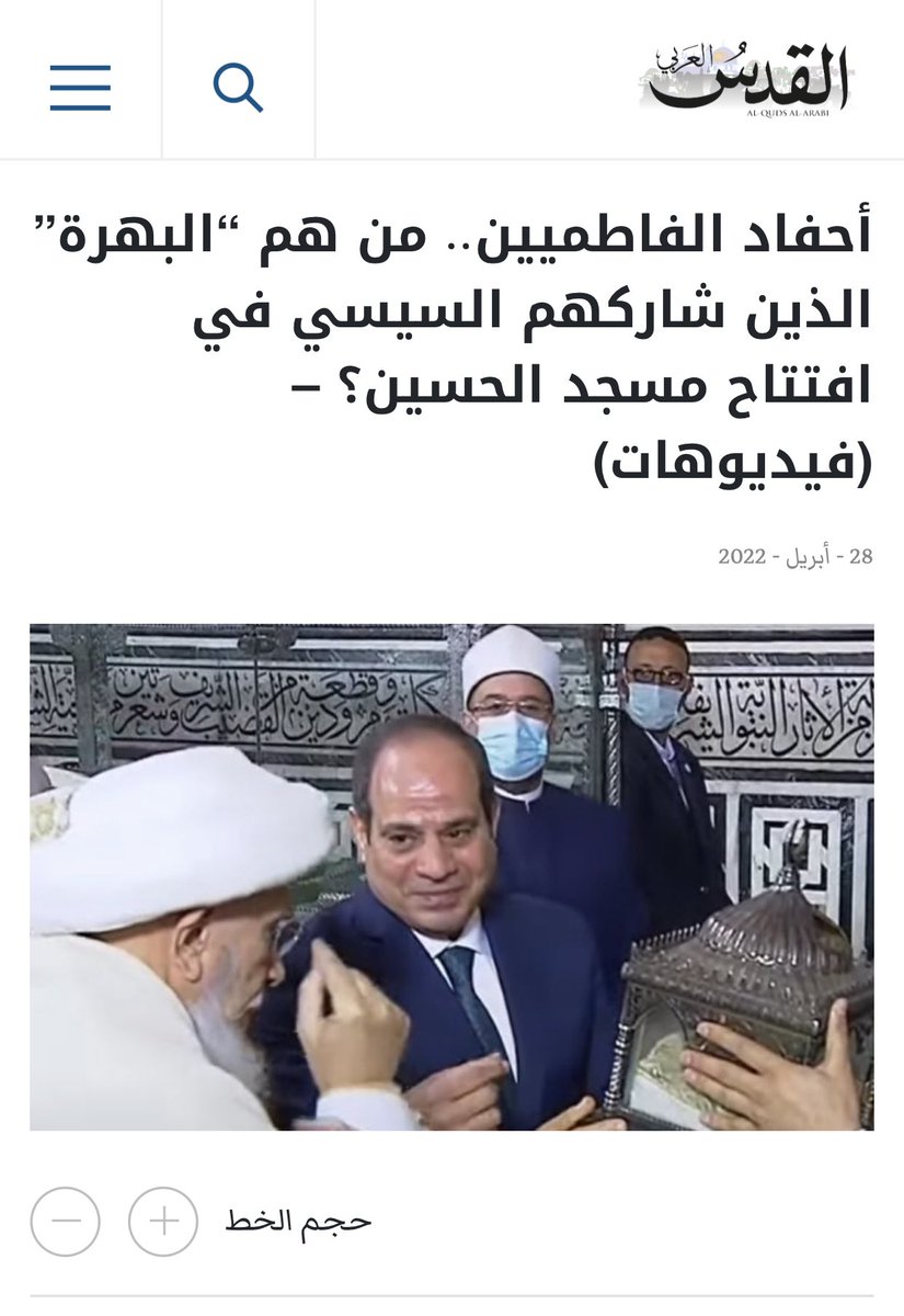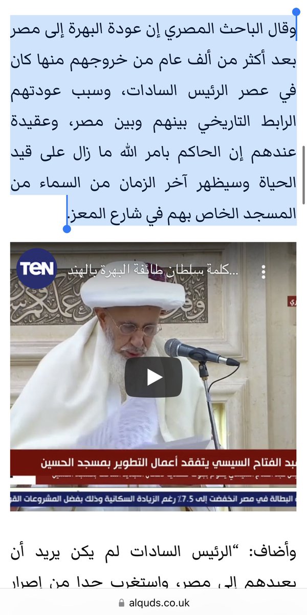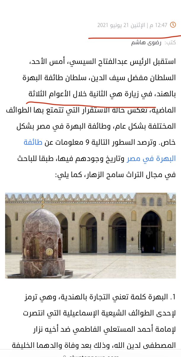 تقرير مهم نشرته الشروق يوم ٢٧ أبريل عن البهرة ويتضمن معلومات مفيده عن عقيدتهم وعن جهود سلطان الطائفة في ترميم مقامات آل البيت في مصر وتبرعاته لصندوق تحيا مصر.