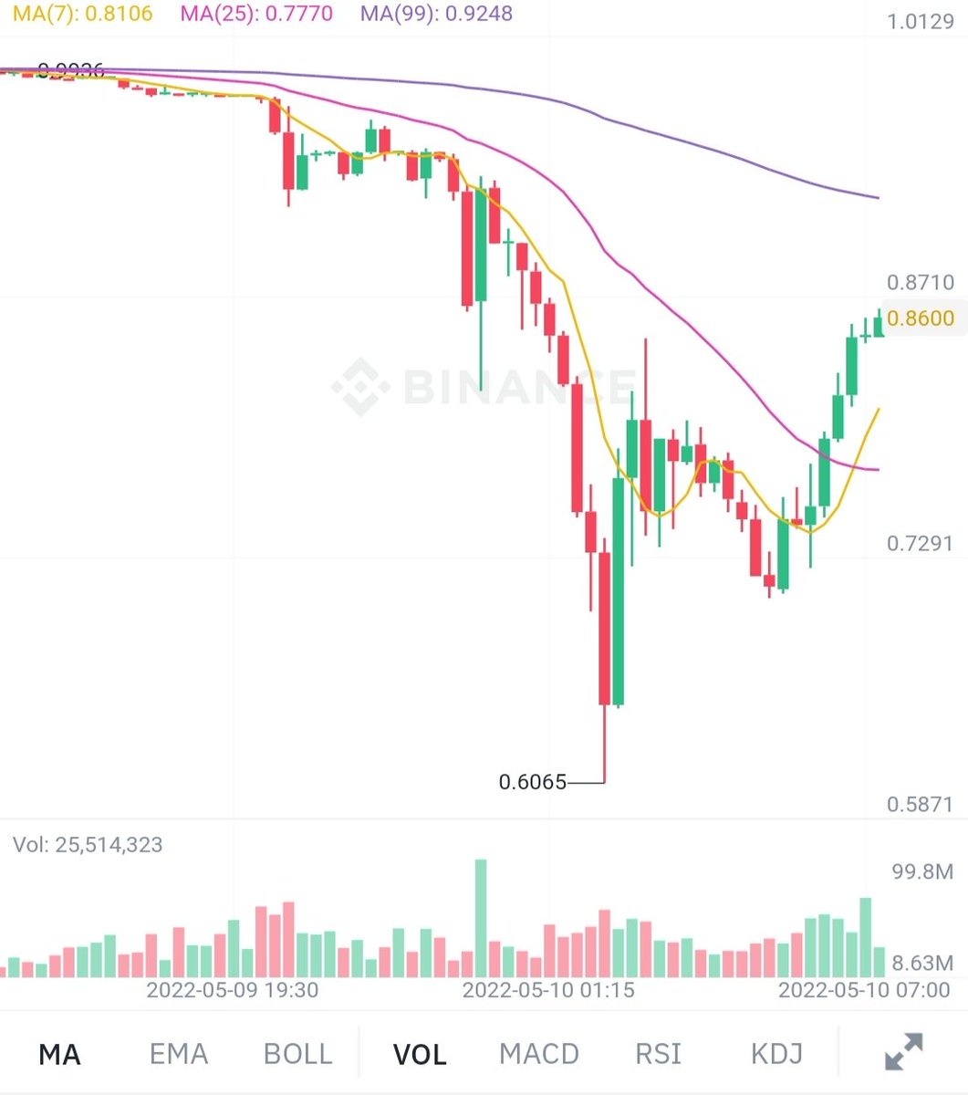 هبطت العمله المستقرة $UST أكثر من 🔻35% و بالتزامن هبطت $Luna أيضا 🔻50%.