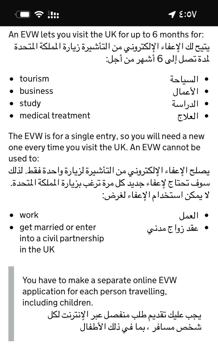 رسالة بريد إلكتروني في غضون 24 ساعة تحتوي على رابط لتنزيل EVW (التاشيرة الالكترونية) لـ بريطانيا 🇬🇧