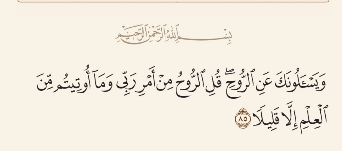 وَيَسْأَلُونَكَ عَنِ الرُّوحِ ۖ قُلِ الرُّوحُ مِنْ أَمْرِ رَبِّي