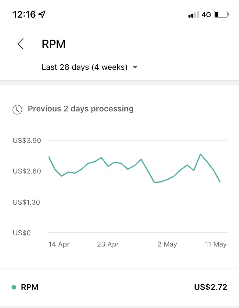 في أمر آخر مهم جدا جدا وهذا يحدد كم تكسب من القناة، وهو عامل (RPM- revenue per mile) يعني كم تاخذ على كل ١٠٠٠ مشاهدة (شرط يطلع عليها اعلان) وهنا لازم تعرف انه ال RPM ممكن يكون قيمته مرتفعة ليوتيوبر ويوتيوبر اخر قيمته منخفضة بناءا على عدة عوامل 👇