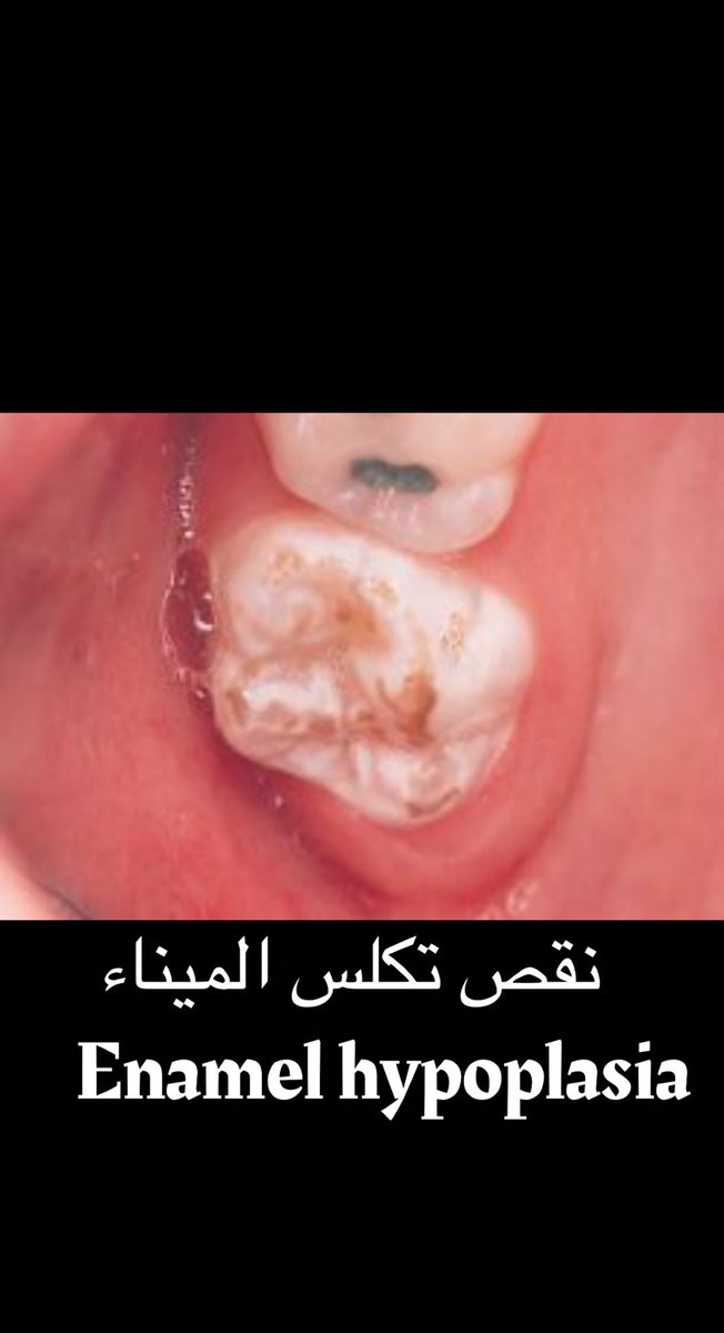 ٢- او قد يكون دليل على نقص في التكلس سواءً قبل أو بعد بزوغ السن ( نقص تمعدن الكالسيوم في السن ) مما يسبب نقص تنسج الميناء وظهور بُقع بيضاء على السن .