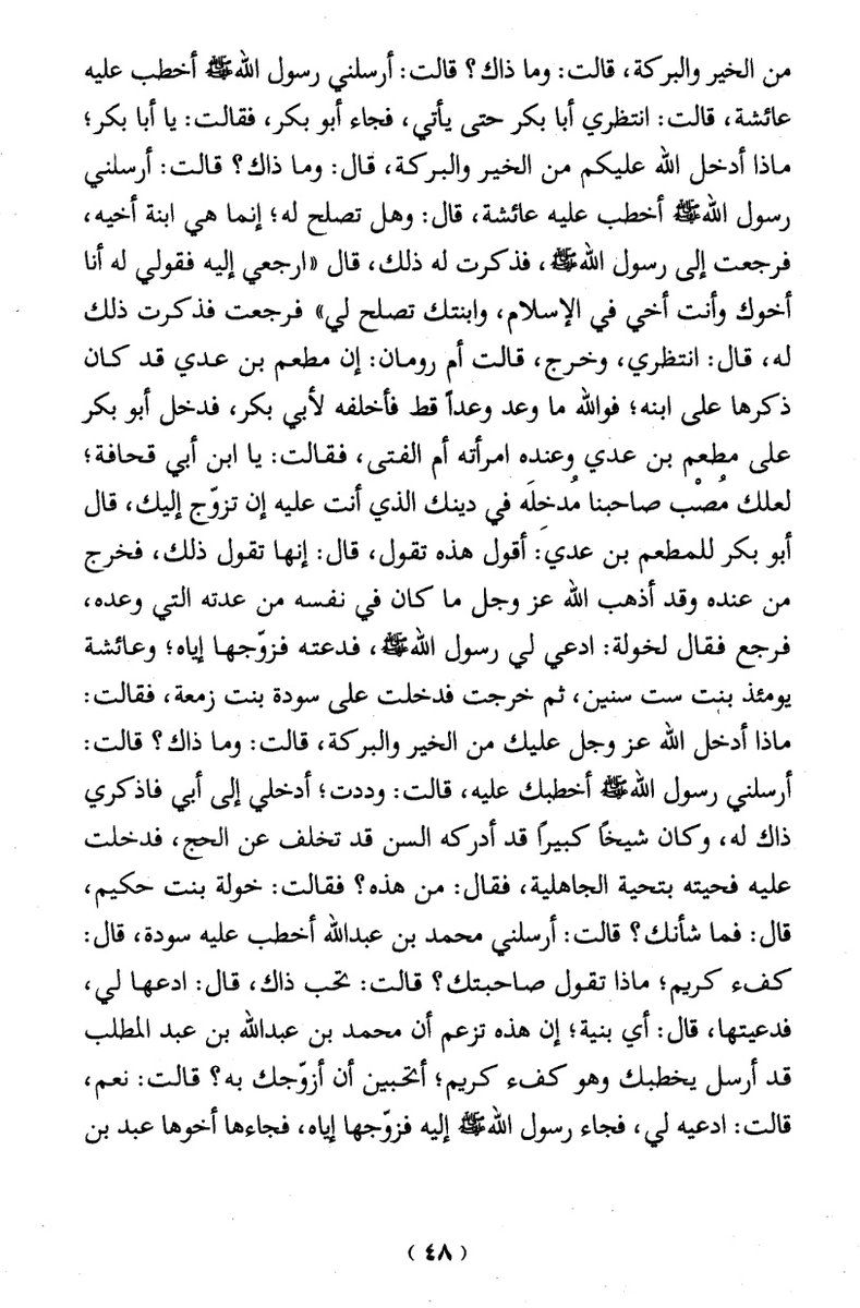لما هلكت خديجة جاءت خولة قالت يا رسول الله ألا تزوج قال من قالت إن شئت بكراً وإن شئت ثيباً قال فمن البكر قالت ابنة أحب خلق الله إليك وذكر تفاصيل القصة وفيها أنها كانت بنت ست سنين عند العقد وبنت تسع عند البناء
