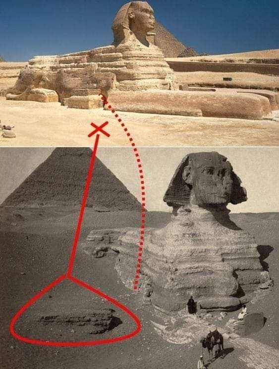 7️⃣ الفرنسي «بيرنج» عام 1937 خلف الرأس وكان ذلك بحثاً عن كنوز داخل جسمه وحين تم إعادة تنظيف هذا السرداب كان أهم ما عثر بداخله جزءا من رداء الرأس الخاص بأبو الهول. السرداب الثالث خلف «لوحة الحلم» حيث قام المغامر الإيطالي كافجليا في أوائل القرن التاسع عشر بالحفر أسفل صدر أبو الهول
