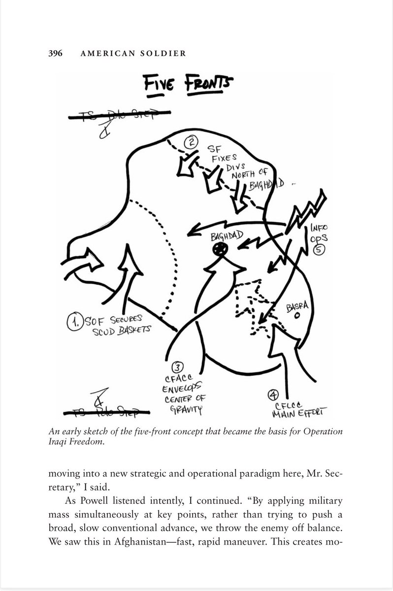 وايضا قال لي صدام حسين سابقا انه يعرفك . يقول فرانكس حملته رساله لصدام حسين على (انني رجل جدي وعليه ان يثق بي )!!!. يقول ان علي عبد الله صالح كان يريد ان يقوم بدوره لايصال الرسائل لانه كان يريد تحسين علاقته مع الغرب وبدورنا قد نستفيد منه بالمستقبل .
