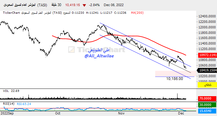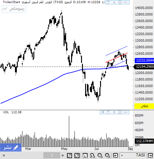 تجاوز تاسي اليوم مستويات الدعم هبوطا الى مستويات الدعم الاسبوعي عند 12,355