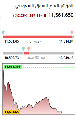 المؤشر العام متراجع حتى الأن بأكثر من 20% ( 267 نقطة )