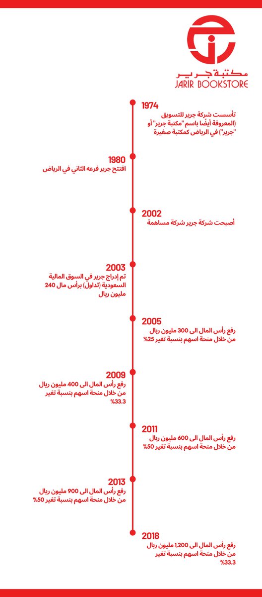 قامت #جرير منذ الإدراج برفع رأس مالها 5 مرات وكلها كانت من خلال منحة أسهم مجانية.