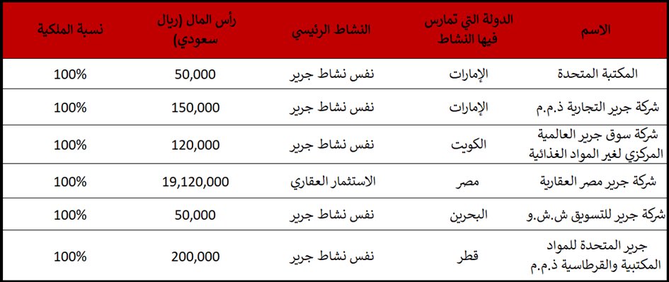 الجدول التالي يوضح المبيعات وصافي الربح لنشاط #جرير داخل وخارج المملكة.