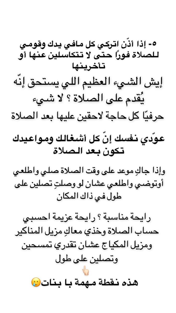 ودي اليوم بنات نراجع أنفسنا ونشوف كيف وضعنا مع الصلاة؟