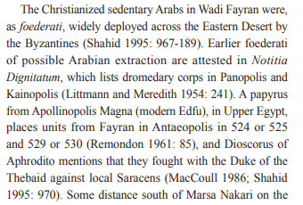 7. هذا لا يعني أن كل مصر كانت عربية قبل الإسلام، فنحن نعلم أن هذا الوجود العربي قبل الإسلام لم يمتد أبعد من شرق النيل إلى داخل حوض النيل أو غربه. ومع ذلك، هناك شيء واحد يجب ملاحظته، وهو أن العربية لم تكن غريبة على مصر قبل الإسلام.