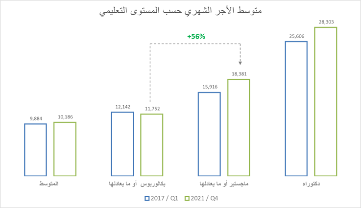 الأسباب ممكن تكون كثير ولكن اذا جمعنا هذي النقطة مع النقاط السابقة ممكن تشير إلى أن هناك طلب أعلى على أصحاب درجة الماجستير في سوق العمل وهذا واضح من ارتفاع نسبة الرواتب وعدم تأثرهم بجائحة كورونا.