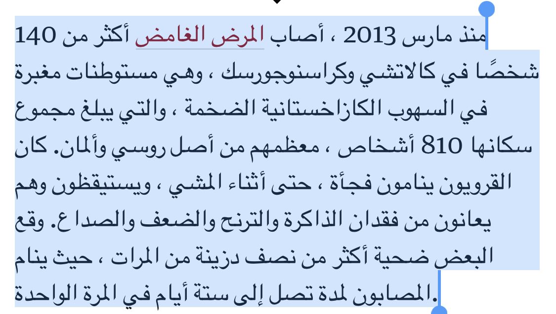 في عام 2013 من شهر مارس أحد شهور فصل الربيع أصاب قرية كالاتشي الكازخستانية وباء غريب على السكان البالغ عددهم قرابة 800 نسمة جعلهم يغطون في سبات عميق حيث بدأ السكان ينامون واحدا تلو الآخر بغض النظر عن موقعهم أو ما يفعلون ويستمرون بالنوم أحيانا قرابة أسبوع.