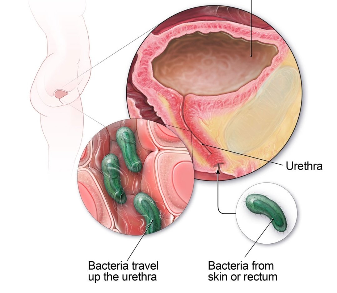 4️⃣انسداد مجرى البول (مثل الحصوات،التضيق بمجرى البول. تضخم البروستات للرجال)