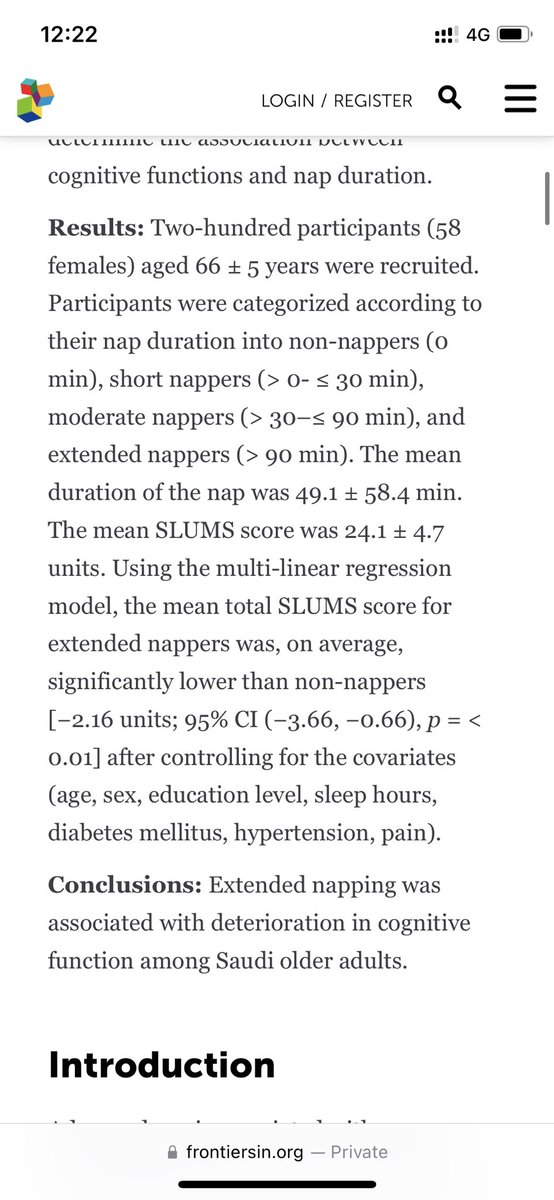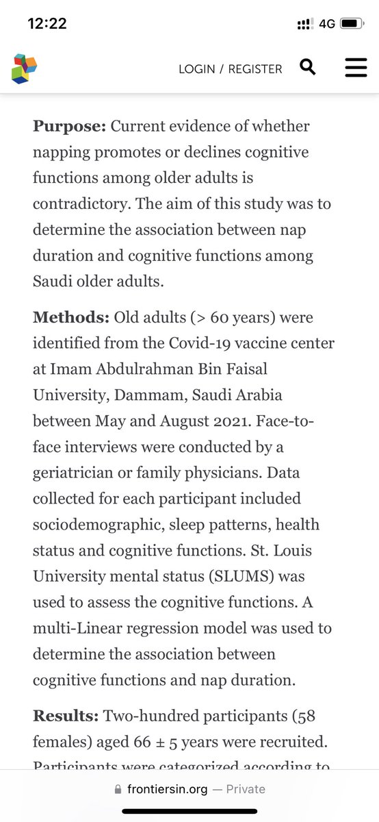 وجدنا في هذا البحث أن كبار السن السعوديين (٦٠ عاما فأكثر) الذين يقيلون قيلولة تستمر أكثر من ٩٠ دقيقة لديهم تدهور في الذاكرة.