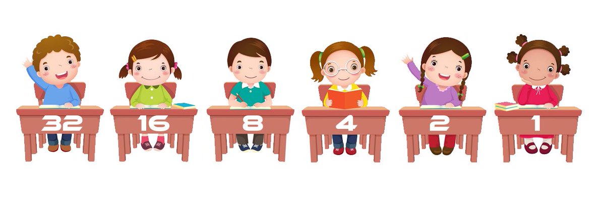 لاحظوا في مثالنا انه يمكن للستة اطفال فقط عمل 63 تشكيل او توليفه مختلفه من خلال رفع اليد او خفضها.