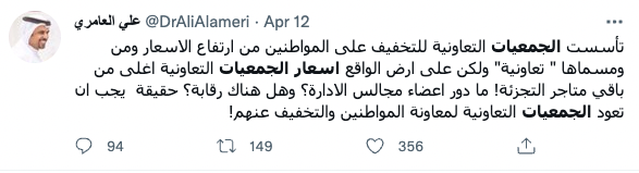 يطالب بعض الناس بوجود الجمعيات التعاونية لبيع منتجات البقالة وبسعر منخفض بعيد عن "جشع التجار" وكذلك الاحتفاظ بالأرباح لأعضاء الجمعية الذين هم المستهلكين نفسهم