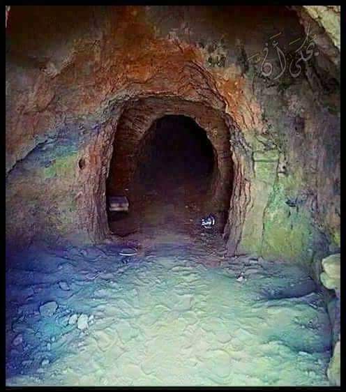 إلا أن الله ألهمه برفع خصفة وجدها على الأرض فوجد تحتها لوحاً من الخشب فرفعه ووجد سرداباً عميقاً
