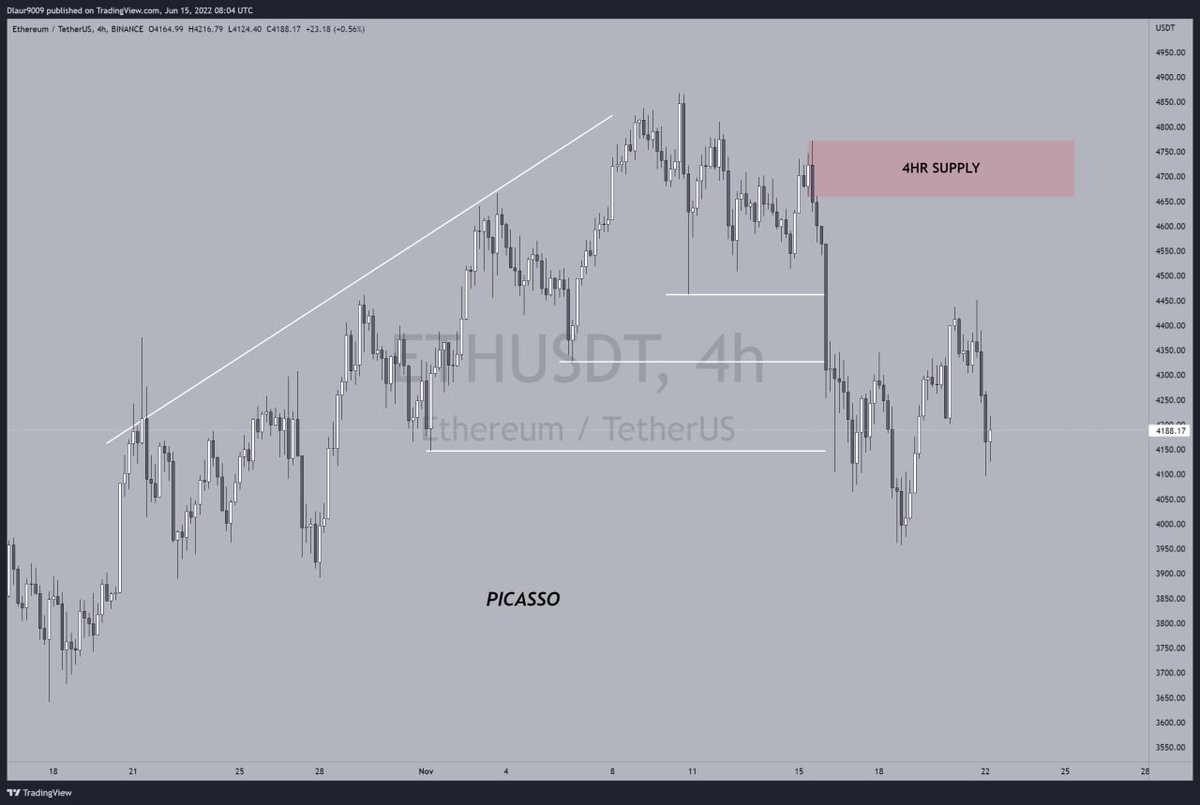 Here we'd start from a higher time frame, then work our way down to the lower time frames.