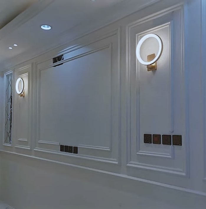 #تصميم_داخلي #البانوهات توزيع الاضاءه ومفاتيح الكهرباء نحدد بالبدايه مكان البانوهات لتتناسق مع الاضاءه وتكون مفاتيح الكهرباء داخل البانوهات وليس في الطرف