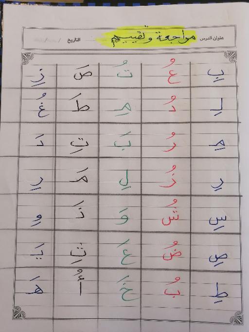 ابدأ بالحروف السطرية ب ت ث د ذ ل ن و