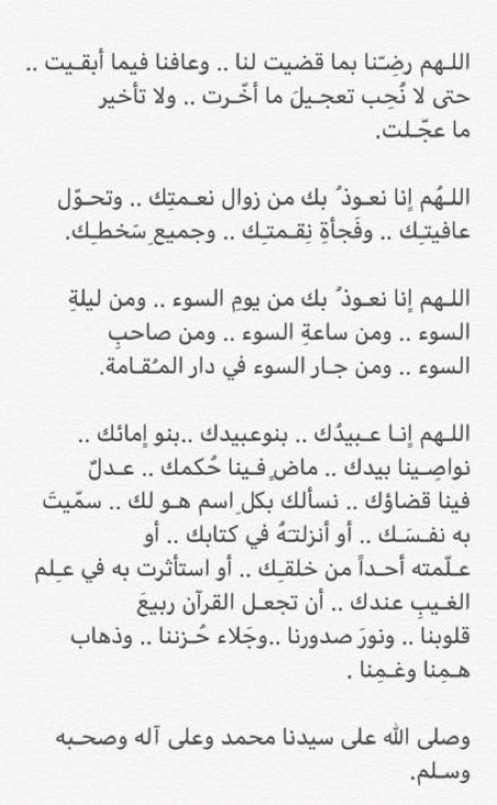 (اللهم اغفر لي خطيئتي وجهلي وإسرافي في أمري وما أنت أعلم به مني، اللهم اغفر لي جدي وهزليي وخطأي وعمدي وكل ذلك عندي، اللهم اغفر لي ما قدمت وما أخرت، وما أسررت وما أعلنت، وما أنت أعلم مني أنت المقدم وأنت المؤخر وأنت على كل شيء قدير)