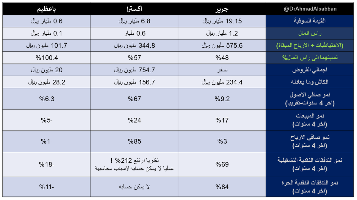 نمو صافي الاصول رقم اقل من عادي لجرير (لانها توزع اغلب ارباحها)