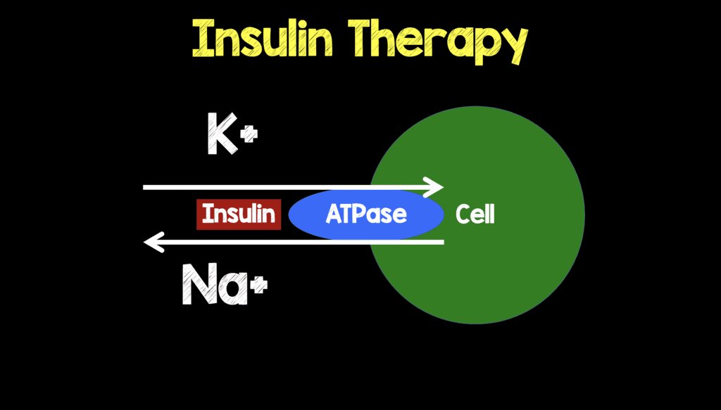 🧑⚕️ملاحظة : البوتاسيوم يعطى مع او بعد اعطاء الانسولين ✅ لكن ليس قبل اعطاء الانسولين ❌ لانهم بيكون عندهم Hyperkalemia اصلا ، فبدي انسولين اول يدخلي البوتاسيوم للخلايا ويقلله من الدم ثم اعطي بوتاسيوم اعوض النقص الكلي ..