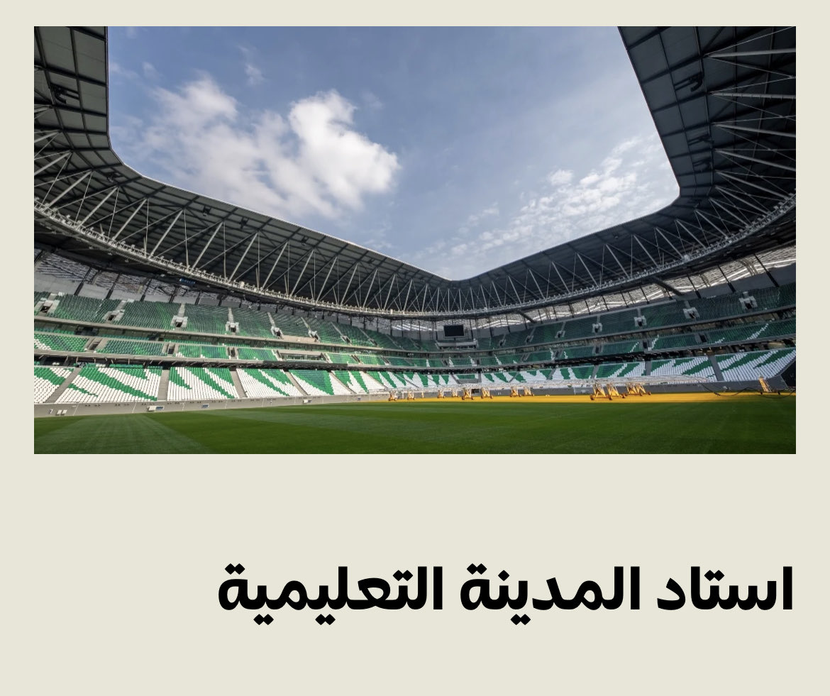 هي: ١- استاد لوسيل بين (السعودية🇸🇦-الارجنتين🇦🇷) وايضاً سوف تقام فيه (السعودية🇸🇦 - المكسيك🇲🇽) ٢- استاد المدينة التعليمية (السعودية🇸🇦 - بولندا🇵🇱) مهم جداً ان تقوم بالبحث عن الملاعب وماهي اقرب المواصلات لك للتنقل من مكان سكنك