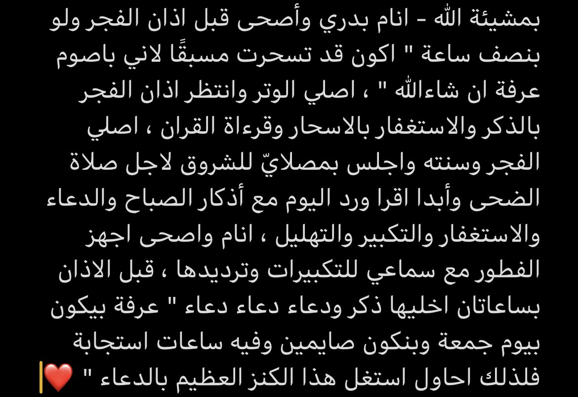 اصحوا جهزوا فطوركم وفطور اهاليكم الصايمين ولو كان فالامر مشقه وحر وتعب احتسبوا الاجر ، اجلسوا من بعد العصر في مكان رايق هادي واذكروا الله بشتىء الطرق لامن ذكر ولا من قراءة قران ولا من تكبير وتهليل ،