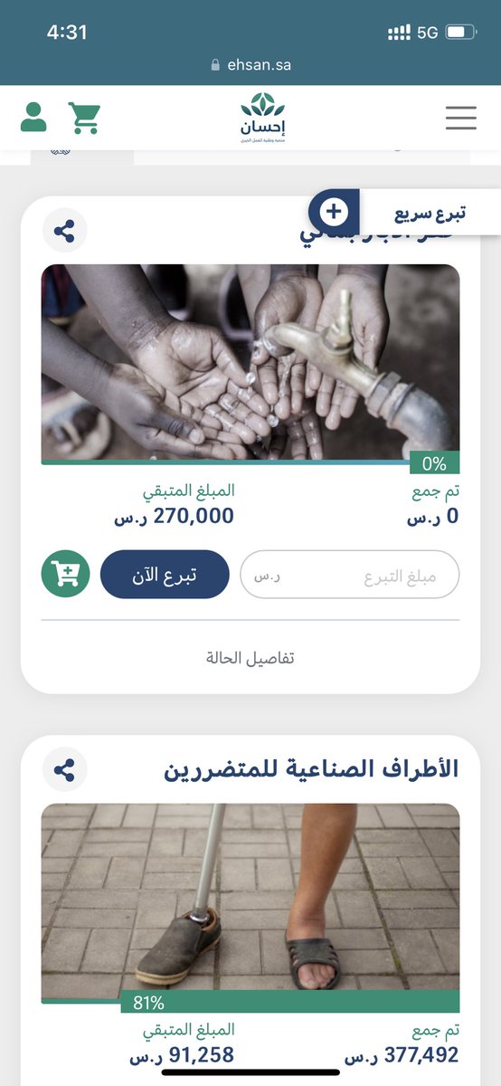 ويمكن التبرع من خلالها بأي مبلغ وأي وسيلة دفع على الرابط الآتي: donations.sa
