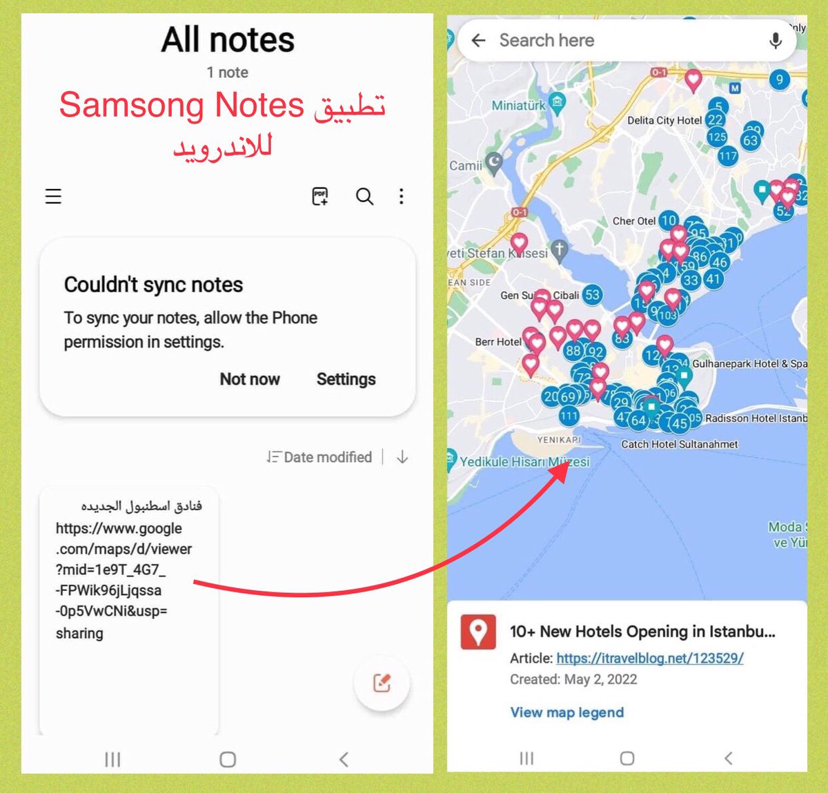 ١-الآيفون:نسخ الرابط من التغريده الأصل ولصقه في صفحة جديده لتط المذكرات Notes وحفظه بعنوان سهل للرجوع اليه ثم ضغط الرابط منه فينقلك #المتصفح مياشرة الى تط #خرائط_قوقل في الجوال