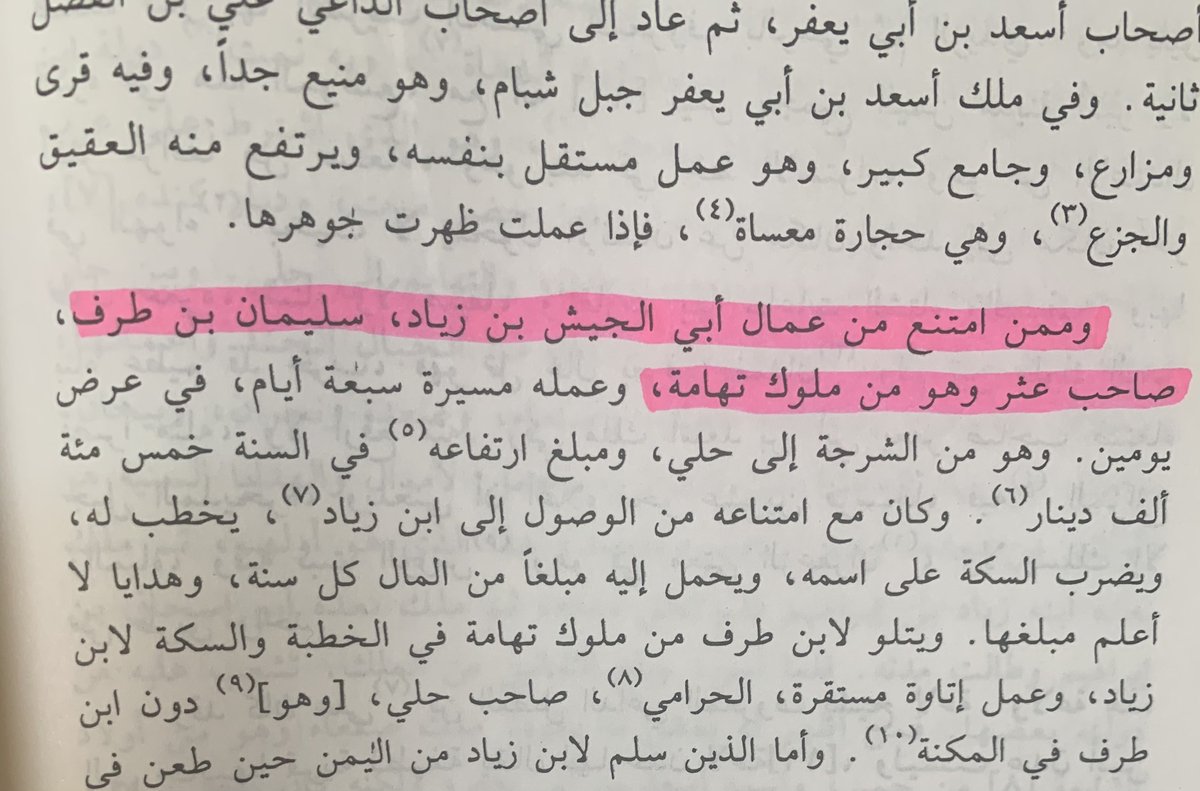 وقد عرفتَ أيها القارئ اللبيب فيما سبق من هذه السلسلة أن المؤرخ عبدالباقي بن عبدالمجيد المتوفى ٧٤٣ هـ جزم بنسبة #المخلاف_السليماني إلى سليمان بن طرف فيما نقله عنه النويري المتوفى ٧٣٣ هـ مشافهةً في موسوعته الضخمة ( نهاية الأرب ) من فيه لفيه ومن نسخة بخط