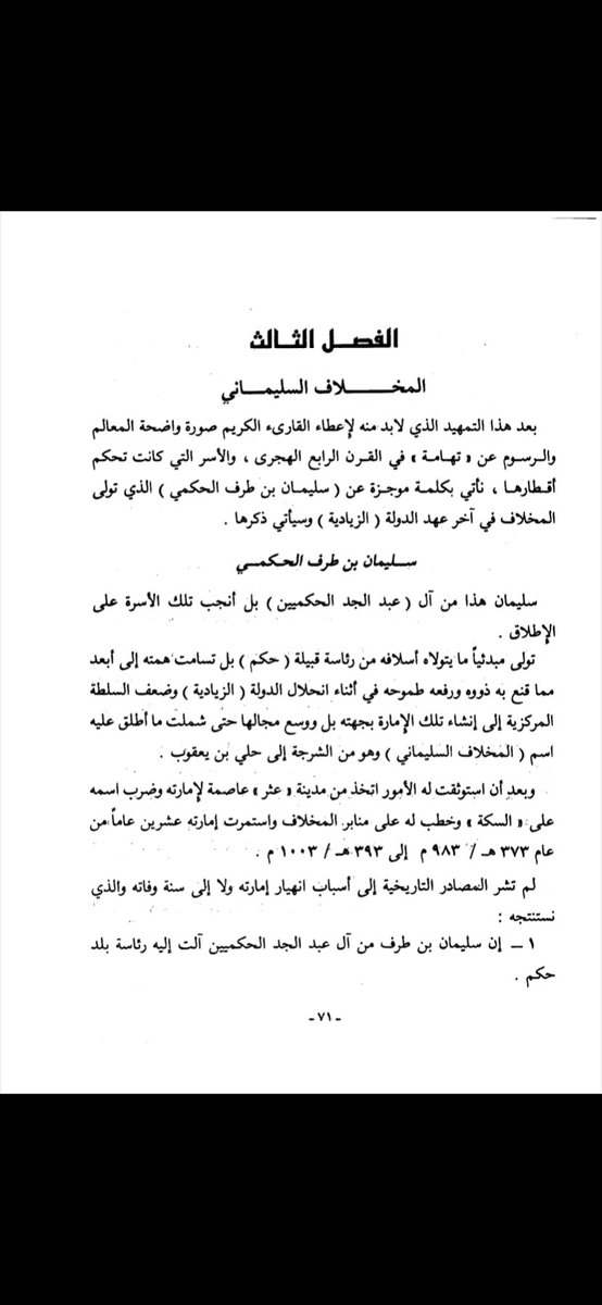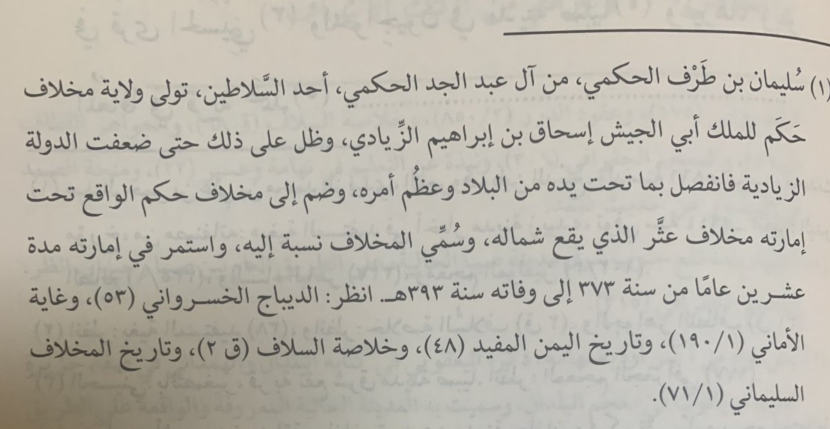 فمن يكون سليمان بن طرف هذا غير سليمان الحكمي السلطان الأبيّ الذي قضى على ملكه الحسين بن سلامة الزيادي خوفاً من تفاقم أمره لأنه شعر بالخوف من القوة المتنامية للحكمي التي تهدد 2️⃣6️⃣