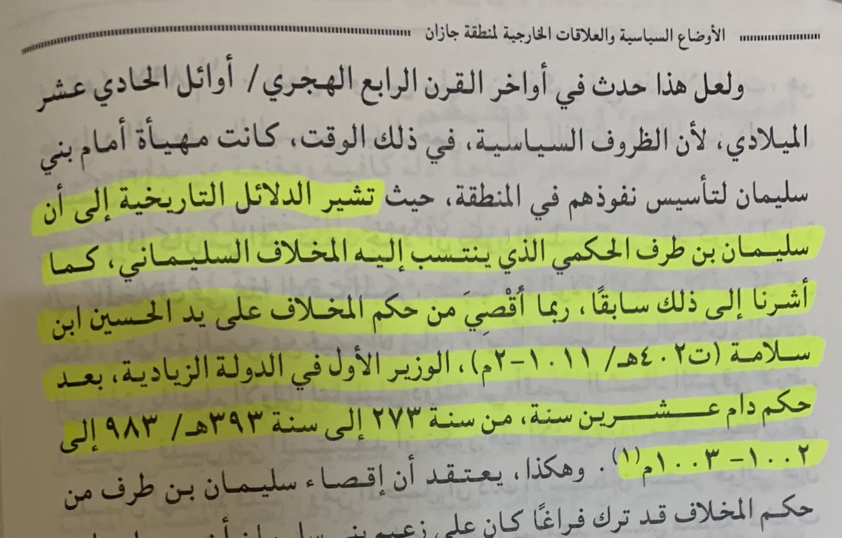 وبهذا يتضح أن عمارة الحكمي نسب #المخلاف_السليماني صراحةً إلى السلطان سليمان بن طرف مؤسسِه وموحّدِه .
