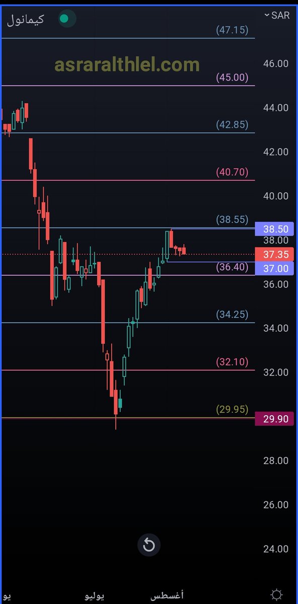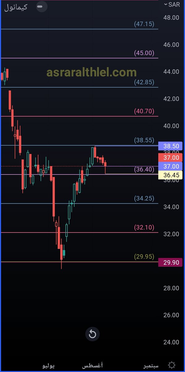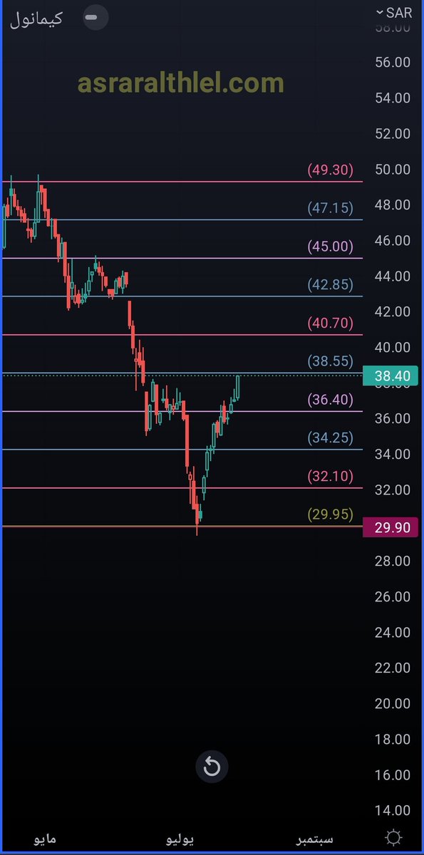 تستمر مقاومه حتى يتم اختراقها بإغلاق ثم إلى مقاومة 40.50 الرقميه..