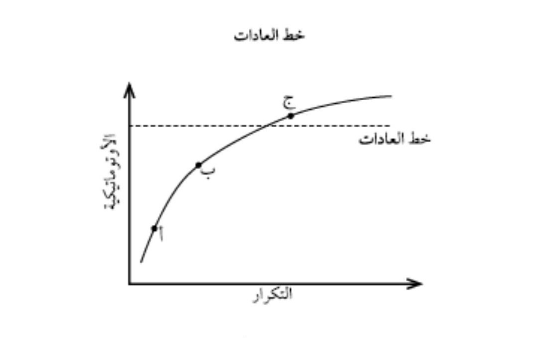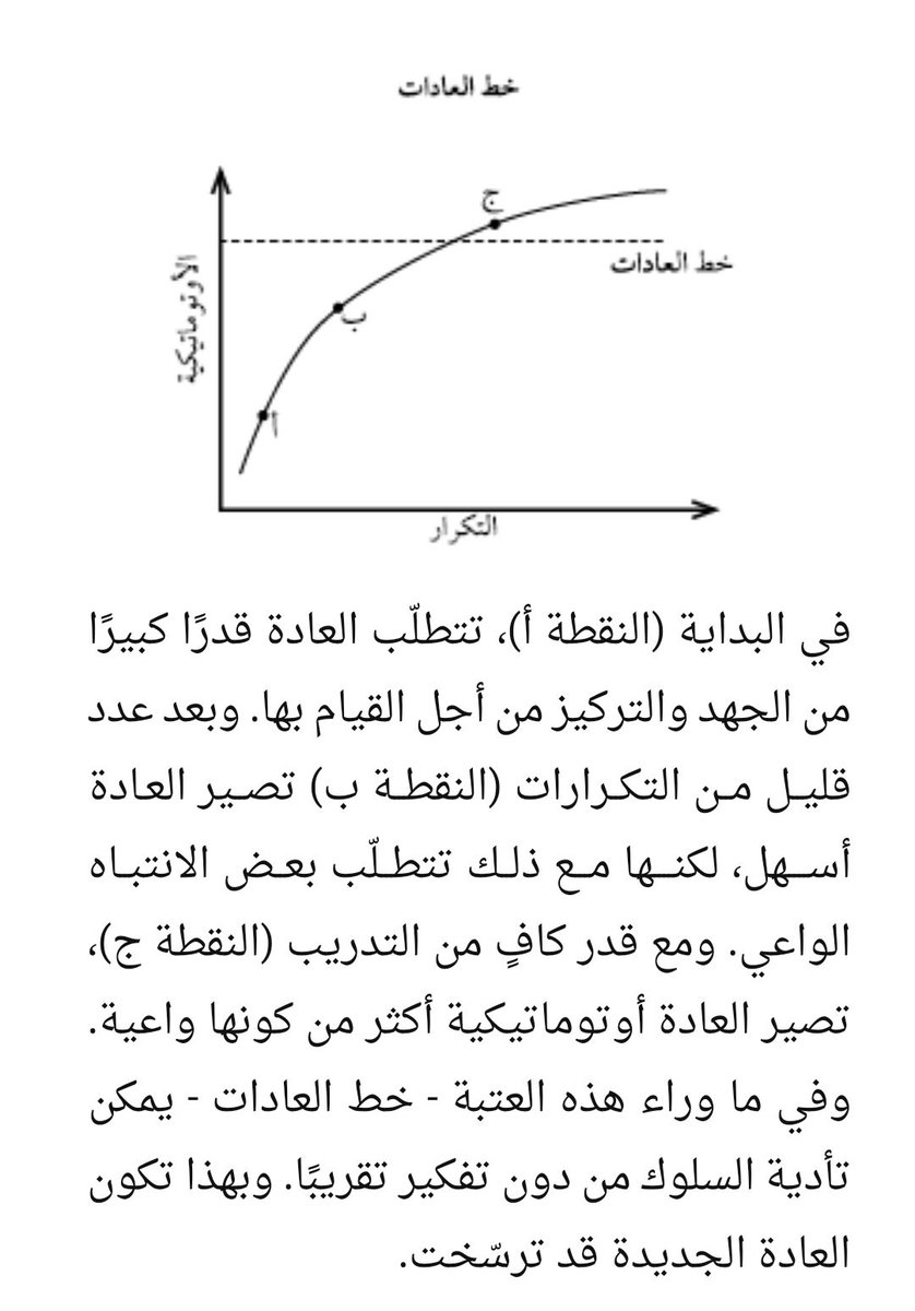 فعندما تتجاوز خط العادات وتصل للنقطة ج، تصبح ممارسة العادة اسهل، وتبدا بممارستها من دون جهد او تفكير يذكر✅️