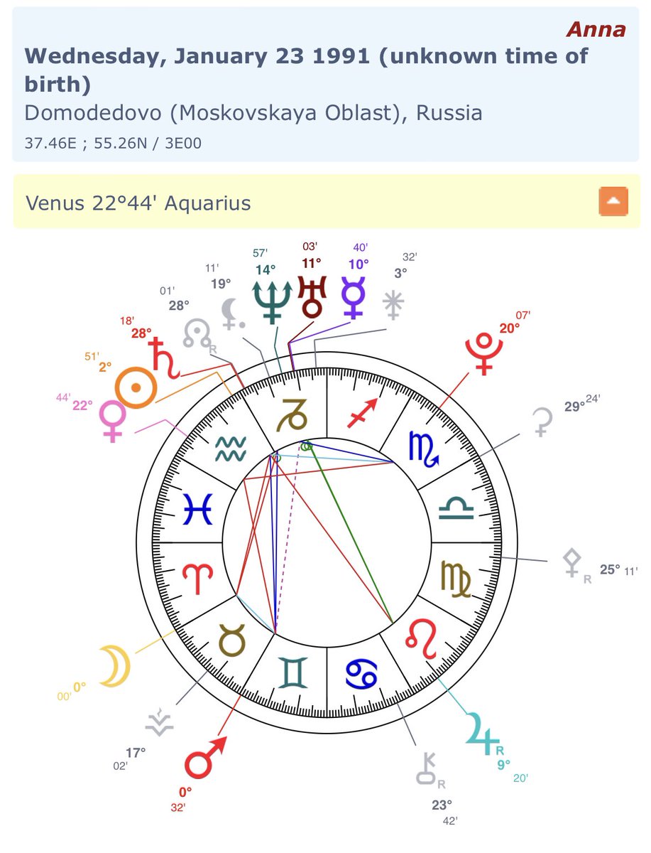 لاحظوا المشتري عندها بالأسد مما يرفع عندها الاستحقاق الذاتي و يخليها تشوف نفسها تستحق اغلى الخدمات والممتلكات! المشكلة انو المشتري اتصل سلبًا مع كوكب (الأنا) مما دفعها للجوء لطرق غير صحيحة وملتوية لإشباع رغبات الشخصية المزيفة الي صنعتها لنفسها