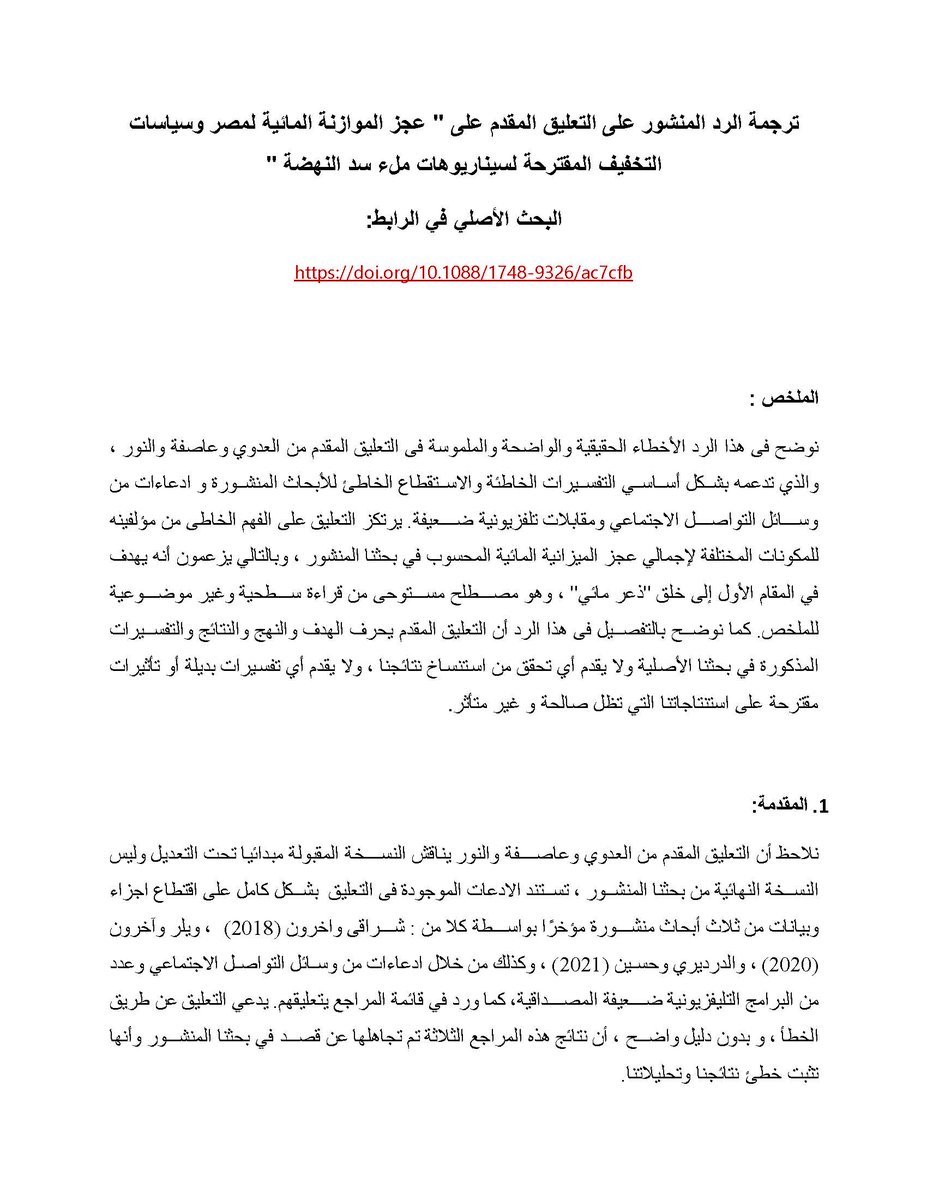 @sakerElnour @Ragab لو ديه مجموعة علمية ممكن نفهم هي بتشتغل في الخفاء ليه؟ وليه مصر وأثيوبيا لم يعلنوا عنها؟ ومصدر تمويلها إيه (لم يذكر على عكس بحثنا)؟ ومين يرأس المجموعة ديه؟ وليه أحد كتاب المقال الثلاث ينتمي لمؤسسة WeAspire النشطة في دعم سد النهضة؟ ولماذا لا تظم خبراء في المجال؟ أسئلة ومش تخوين